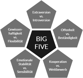 Der LINC Personality Profiler basiert einerseits auf den Big Five, auch bekannt als das Fünf-Faktoren-Modell. Dieses Modell hat sich international als führender Ansatz in der Persönlichkeitsforschung etabliert. Mehrere tausend wissenschaftliche Studien untermauern regelmäßig die hohe Validität dieses Modells. Im Kern dieses Modells steht die Analyse der Persönlichkeit einer Person durch die Messung von fünf zentralen Eigenschaften.