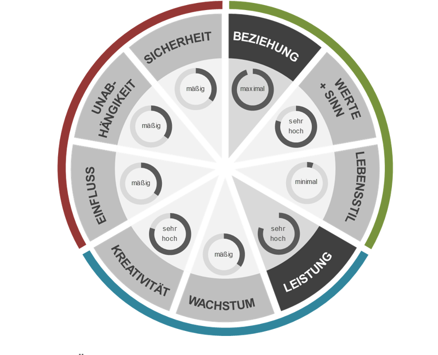 Neben den fünf Dimensionen gibt es im LINC Profil noch einen zweiten wichtigen Bereich und das sind die Motive - also, dass was uns antreibt. LINC unterscheidet zwischen diesen neun Motiven, wobei zwei klar als Hauptantreiber benannt werden.